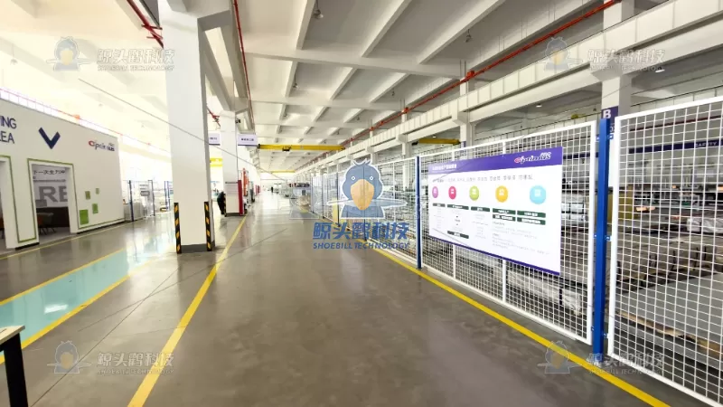 पीली रेखाएँ उपकरण की सीमाओं और पैदल मार्गों को परिभाषित करती हैं, जबकि नीले रैक और चैनल सामग्री और औजारों के क्षेत्रों को दर्शाते हैं। यह दृश्य संरचना भ्रम को कम करती है, यातायात के टकराव को रोकती है और समग्र परिचालन अनुशासन को बढ़ाती है।